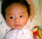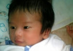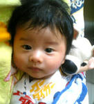 二日前頃から、頭皮が赤く腫れてるなぁ・・と思ったら、昨日ぐらいから、黄色い膿?のような瘡蓋ができてきて、顔も赤くプツプツニキビの様なモノができてきて、ちょっとびっくり・・・乳幼児特有の 乳幼児湿疹 というものらしい。皮脂の分泌がこの時期過剰なので、多くの乳幼児がかかるものらしいけど、ちょと痛々しい・・ので写真は、湿疹ができる前の1日の頃をあげてみる(^^ゞ