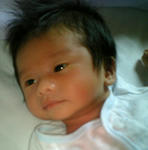 元気な声ではあった赤ちゃんですが、予定日を一週間遅れていたためか、羊水を結構飲んでしまっていて、もしかしたら、新生児の集中医療室に移されそうでしたが、なんとか、無事に大事になる事もなく、すぐに、隣に寝かせて見せてくれました♪ 3375g の男の子です。なんだか、赤ちゃんって・・もっと 髪の毛が無いイメージだったんですが・・・フサフサしてるんですよ・・(笑)