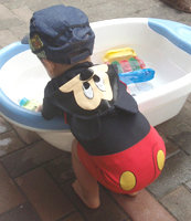 水の中に入る事はなかったんですが、水遊びをして来ました。裸では、そろそろ・・な時期でもあったので、水着着用・・・・・ミッキーに変身しました(笑) 結構皆に、うけた水着だったよ